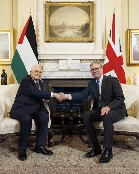 08/09/2025. London, United Kingdom. Prime Minister Prime Minister Keir Starmer meets with President of the Palestinian Authority Mahmoud Abbas for a bilateral meeting in 10 Downing Street., Credit:Lauren Hurley / Avalon