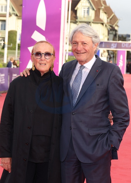 Le Maire de Deauville Philippe Augier et sa femme Beatrice Augier - Arrivées à la première du film "The summer book" lors du 51ème Festival du Cinéma Américain de Deauville le 10 septembre 2025. © Denis Guignebourg / Bestimage Arriving at the premiere of the film ‘The Summer Book' at the 51st Deauville American Film Festival on 10 September 2025.
