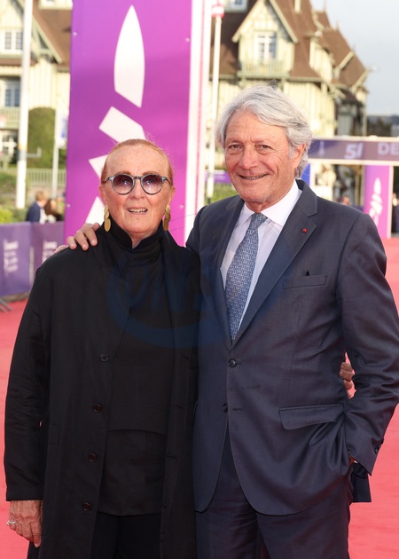 Le Maire de Deauville Philippe Augier et sa femme Beatrice Augier - Arrivées à la première du film "The summer book" lors du 51ème Festival du Cinéma Américain de Deauville le 10 septembre 2025. © Denis Guignebourg / Bestimage Arriving at the premiere of the film ‘The Summer Book' at the 51st Deauville American Film Festival on 10 September 2025.