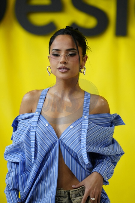 Becky G - Desigual "Studio” line red carpet at the Nau de Turbines de les Tres Xemeneies. Barcelona - September 10, 2025