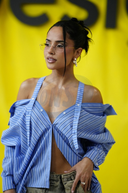 Becky G - Desigual "Studio” line red carpet at the Nau de Turbines de les Tres Xemeneies. Barcelona - September 10, 2025