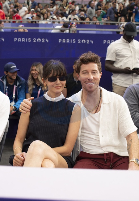 Séparation - Nina Dobrev et Shaun White rompent leurs fiançailles - Fiançailles - Nina Dobrev s'est fiancée avec Shaun White - Shaun White et sa compagne Nina Dobrev - Les célébrités dans les tribunes de l'épreuve d'Escrime au Grand Palais lors des Jeux Olympiques de Paris2024 (JO), le 4 août 2024. © Perusseau-Jacovides-Bestimage Celebrities in the stands of the Fencing event at the Grand Palais during the Paris2024 Olympic Games (Olympics), August 4, 2024.