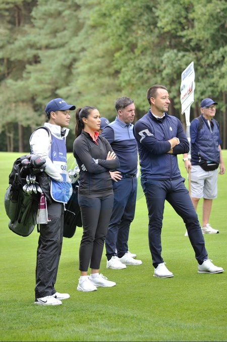 (L-R) Former Professional Field Hockey Player, Sam Quek and Former Professional Footballers, Robbie Fowler and John Terry during the Pro-Am Competition at the BMW PGA Golf Championship at the Wentworth Golf Club, Wentworth Drive, Virginia Water, Surrey, GU25 4LS on Wednesday 10 September 2025., Credit:Sue Andrews / Avalon