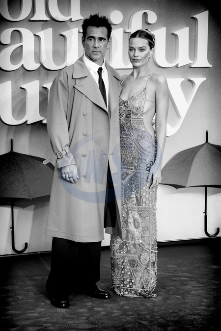 Colin Farrell and Margot Robbie seen at the European Premiere of A Big Bold Beautiful Journey on Thursday 11 September 2025 at ODEON LUXE Leicester Square, London. Editors Note: Image converted to monochrome., Credit:Julie Edwards / Avalon
