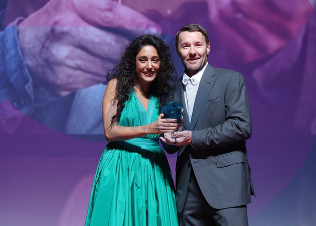 La Présidente du Jury Golshifteh Farahani remet a Joel Edgerton le 'Deauville Talent Award' lors du 51éme Festival du Cinema Américain de Deauville le 11 Septembre 2025. © Denis Guignebourg/Bestimage 51st Deauville American Film Festival on September 11, 2025.