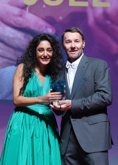 La Présidente du Jury Golshifteh Farahani remet a Joel Edgerton le 'Deauville Talent Award' lors du 51éme Festival du Cinema Américain de Deauville le 11 Septembre 2025. © Denis Guignebourg/Bestimage 51st Deauville American Film Festival on September 11, 2025.