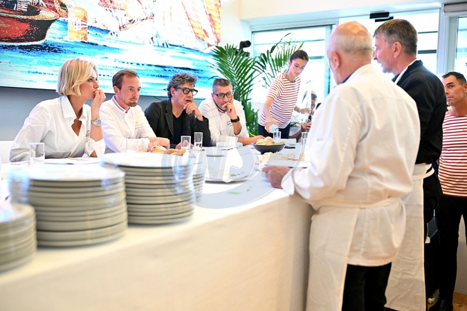 Adriana Karembeu, Tom Meyer, le chef de laChèvre d'Or, Marc Lavoine et et Julien Roucheteau, le chef de la Réserve de Beaulieu - Adriana Karembeu, le mannequin, actrice et animatrice de télévision slovaque, accompagnée par Marc Lavoine, est l'invité du Yacht Club de Monaco pour la Monaco Classic Week à Monaco, le 11 septembre 2025. Bernard d'Alessandri, le secrétaire et directeur général du Yacht Club de Monaco, a fait découvrir à Adriana différentes unités comme Le Créole, 1926, qui appartient à Allegra Gucci, l'arrière-petite-fille de Guccio Gucci, fondateur de la célèbre maison italienne. Adriana a ensuite embarquée à bord du Wiki, pour la régate, puis a participé au jury du Concours des Chefs présidé par Tom Meyer, Meilleur Ouvrier de France et Chef exécutif de la Chèvre d'Or à Eze. Pour Marc Lavoine, c'est une première, participer à une telle compétition a été la découverte d'un nouvel unvivers sportif. En 1994, pour fêter les 10 ans de présidence du Prince Héréditaire Albert et le 90ᵉ anniversaire des premiers meetings internationaux de canots automobiles de 1904, le Yacht Club de Monaco organise une manifestation inédite dédiée au yachting classique, alors en plein renouveau. Le succès de cet événement, réunissant canots automobiles anciens, motor-yachts d'époque et voiliers de tradition, est tel qu'il conduit à son renouvellement en 1996 puis en 1997 pour célébrer les 700 ans de la Principauté. Depuis, cette biennale continue à accueillir sur invitation les plus belles unités du yachting de tradition et du motonautisme d'époque, avec à leur bord des armateurs passionnés. © Bruno Bebert / Bestimage Adriana Karembeu and her partner Marc Lavoine are in Monaco for Monaco Classic Week, organised by the Yacht Club on september 11th 2025