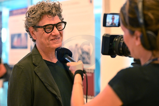 Marc Lavoine au micro de TV Monaco - Adriana Karembeu, le mannequin, actrice et animatrice de télévision slovaque, accompagnée par Marc Lavoine, est l'invité du Yacht Club de Monaco pour la Monaco Classic Week à Monaco, le 11 septembre 2025. Bernard d'Alessandri, le secrétaire et directeur général du Yacht Club de Monaco, a fait découvrir à Adriana différentes unités comme Le Créole, 1926, qui appartient à Allegra Gucci, l'arrière-petite-fille de Guccio Gucci, fondateur de la célèbre maison italienne. Adriana a ensuite embarquée à bord du Wiki, pour la régate, puis a participé au jury du Concours des Chefs présidé par Tom Meyer, Meilleur Ouvrier de France et Chef exécutif de la Chèvre d'Or à Eze. Pour Marc Lavoine, c'est une première, participer à une telle compétition a été la découverte d'un nouvel unvivers sportif. En 1994, pour fêter les 10 ans de présidence du Prince Héréditaire Albert et le 90ᵉ anniversaire des premiers meetings internationaux de canots automobiles de 1904, le Yacht Club de Monaco organise une manifestation inédite dédiée au yachting classique, alors en plein renouveau. Le succès de cet événement, réunissant canots automobiles anciens, motor-yachts d'époque et voiliers de tradition, est tel qu'il conduit à son renouvellement en 1996 puis en 1997 pour célébrer les 700 ans de la Principauté. Depuis, cette biennale continue à accueillir sur invitation les plus belles unités du yachting de tradition et du motonautisme d'époque, avec à leur bord des armateurs passionnés. © Bruno Bebert / Bestimage Adriana Karembeu and her partner Marc Lavoine are in Monaco for Monaco Classic Week, organised by the Yacht Club on september 11th 2025