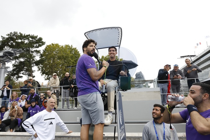 Exclusif - Redouane Bougheraba, Adel Rami - 2éme édition du Tournoi des célébrites pour l'Association Princesse Margot lors de l'Alpine Paris Major Premier Padel 2025 à Roland Garros, Paris le 11 septembre 2025. © Marc Ausset-Lacroix/Bestimage No Web - Belgique et Suisse Exclusive - For Germany calle for price - 2nd edition of the Celebrity Tournament for the Princess Margot Association during the Alpine Paris Major Premier Padel 2025 at Roland Garros, Paris on September 11, 2025.
