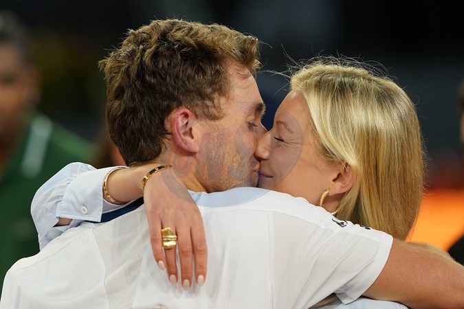 Info - Le tennisman Casper Ruud bientôt papa pour la première fois - Casper Ruud, Norway, celebrates with his fiance Maria Galligani the victory in Madrid Open Tennis 2025 Final match. May 4, 2025.(ALTERPHOTOS/Acero)
