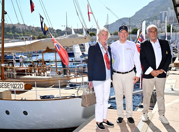 Le prince Albert II de Monaco a fait un passage au Yacht Club de Monaco dans le cadre de la Monaco Classic Week, en compagne de la navigatrice Catherine Chabaud