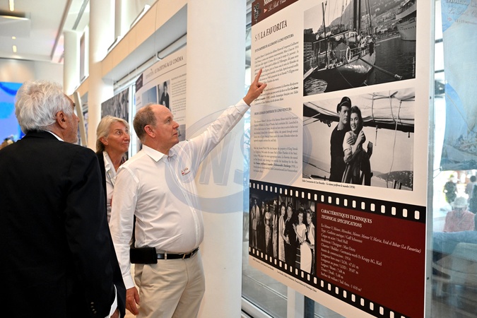 Le prince Albert II de Monaco a fait un passage au Yacht Club de Monaco dans le cadre de la Monaco Classic Week, en compagne de la navigatrice Catherine Chabaud et guidé par Bernard d'Alessandri, le secrétaire et directeur général du Yacht Club de Monaco, le 11 septembre 2025. Ils ont déambulaient sur le quai où les navires d'époques, à voiles et à moteurs sont amarrés. Ils ont ensuite découvert une exposition photographique sur les bateaux et le cinéma avec un clin d'oeil à la princesse Grace et une ilage sortie d'une comédie musicale hollywodienne de 1956, High Society. © Bruno Bebert / Bestimage Prince Albert II of Monaco visited the Monaco Yacht Club as part of Monaco Classic Week, accompanied by sailor Catherine Chabaud and guided by Bernard d'Alessandri, secretary and general manager of the Monaco Yacht Club, on September 11, 2025. They strolled along the quay where vintage sailing and motor boats are moored. They then discovered a photographic exhibition on boats and cinema with a nod to Princess Grace and a scene from the 1956 Hollywood musical High Society.