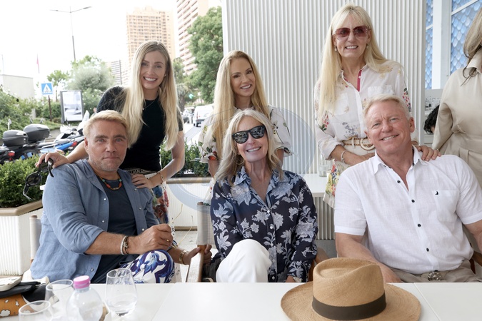 Exclusif - Bo Derek et ses amis, Johan Ernst Nilson, Demi Deyoung, Mr et mrs Elise Roger Norman, Yvonne A.Baki, Sharon Shone au restaurant Cova palais de la plage à Monaco le 10 septembre 2025. © Claudia Albuquerque / Bestimage Exclusive - Bo Derek and friends, Johan Ernst Nilson, Demi Deyoung, Mr and Mrs Elise Roger Norman, Yvonne A.Baki, Sharon Shone at the Cova Palais de la Plage restaurant in Monaco on September 10, 2025.
