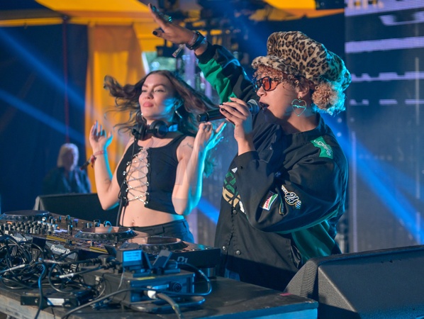 Eva Lazarus and DJ Hazel Marimba at Mucky Weekender 2025 -Thursday, Vicarage Farm, Woodman Cott, Winchester, Credit:Jules Annan / Avalon