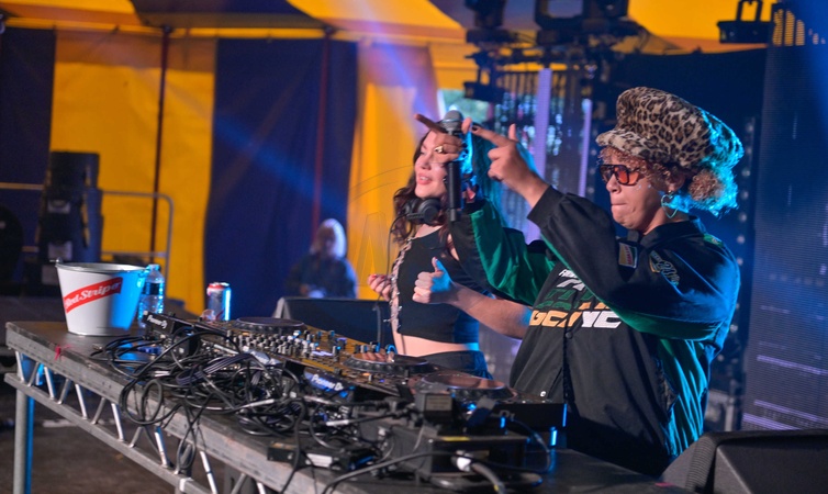 Eva Lazarus and DJ Hazel Marimba at Mucky Weekender 2025 -Thursday, Vicarage Farm, Woodman Cott, Winchester, Credit:Jules Annan / Avalon