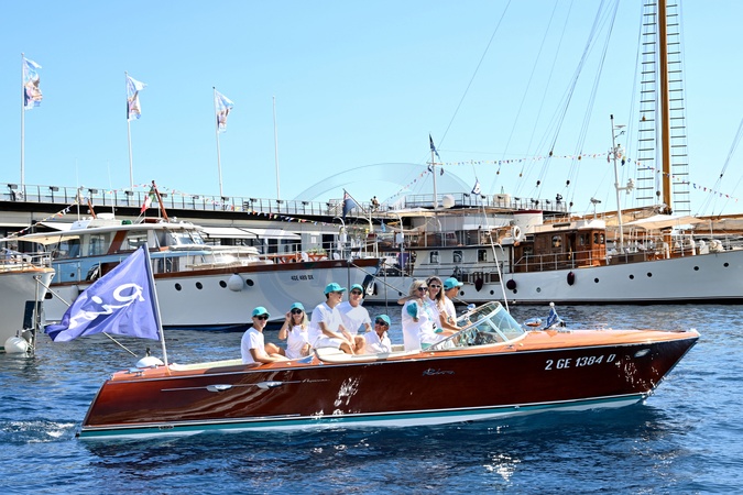 La famille Riva dérrière Lia, sur le Lipicar IV, l'Aquarama personnel de Carlo Riva, baptisé d'après ses trois filles, Lia, Pia et Carla, durant la XVIIe Monaco Classic Week à Monaco organisée par le Yacht Club de Monaco durant la XVIIe Monaco Classic Week à Monaco organisée par le Yacht Club de Monaco. Monaco, berceau du motonautisme, accueillait dès 1904 ses premiers meetings internationaux de canots automobiles. Industriels visionnaires et marins audacieux s'y retrouvaient pour repousser les limites de la vitesse. Dans leur sillage, Chris-Craft et Riva, en tête, perpétuent cette élégance intemporelle. Ces canots, véritables objets de luxe artisanal, sont devenus emblématiques du raffinement nautique. Leur présence à la Monaco Classic Week offre un spectacle unique : celui d'un âge d'or du yachting qui continue de rayonner sur la Principauté. En 1994, pour fêter les 10 ans de présidence du Prince Héréditaire Albert et le 90ᵉ anniversaire des premiers meetings internationaux de canots automobiles de 1904, le Yacht Club de Monaco organise une manifestation inédite dédiée au yachting classique, alors en plein renouveau. Le succès de cet événement, réunissant canots automobiles anciens, motor-yachts d'époque et voiliers de tradition, est tel qu'il conduit à son renouvellement en 1996 puis en 1997 pour célébrer les 700 ans de la Principauté. Depuis, cette biennale continue à accueillir sur invitation les plus belles unités du yachting de tradition et du motonautisme d'époque, avec à leur bord des armateurs passionnés. © Bruno Bebert / Bestimage The Riva family on the Lipicar IV, Carlo Riva's personal Aquarama, named after his three daughters, Lia, Pia and Carla, during the 17th Monaco Classic Week in Monaco organised by the Monaco Yacht Club on september 12th 2025