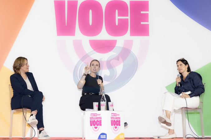 Democratic Party Unity Day.Pictured are Kati Piri, Jacinda Ardern, former Prime Minister of New Zealand, and Elly Schlein, secretary of the Democratic Party . Milan, Italy 12 September 2025, Credit:Rossella Papetti / Avalon