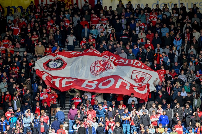 Supporters of Middlesbrough during the Sky Bet Championship match Preston North End vs Middlesbrough at Deepdale, Preston, United Kingdom, 13th September 2025, Credit:Adam Gee/News Images / Avalon