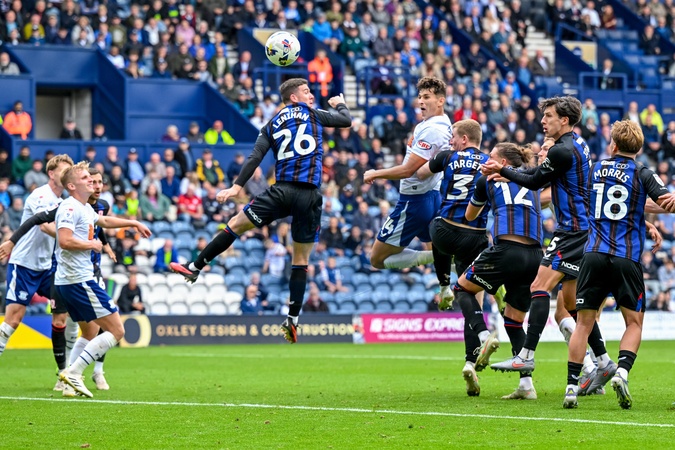 Jordan Story of Preston North End heads the second goal for PNEduring the Sky Bet Championship match Preston North End vs Middlesbrough at Deepdale, Preston, United Kingdom, 13th September 2025, Credit:Adam Gee/News Images / Avalon