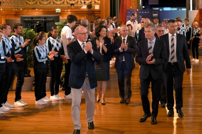 No Tabloïds - Le prince Albert II de Monaco, Yvette Lambin-Berti lors de la réception des athlètes des jeux des petits états d'Europe au musée océanographique à Monaco le 11 septembre 2025. © Claudia Albuquerque / Bestimage NO TABLOIDS Reception for athletes participating in the Games of the Small States of Europe at the Oceanographic Museum in Monaco on September 11, 2025.