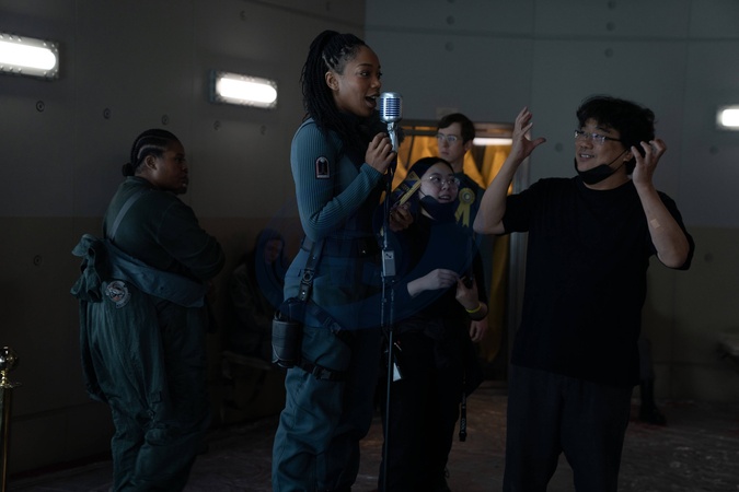 Naomi Ackie, Director Bong Joon Ho, "Mickey 17" (2025), Credit:Warner Bros. / Avalon