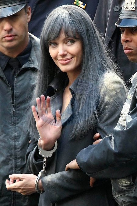 Angelina Jolie na planie filmu "Salt", Nowy Jork