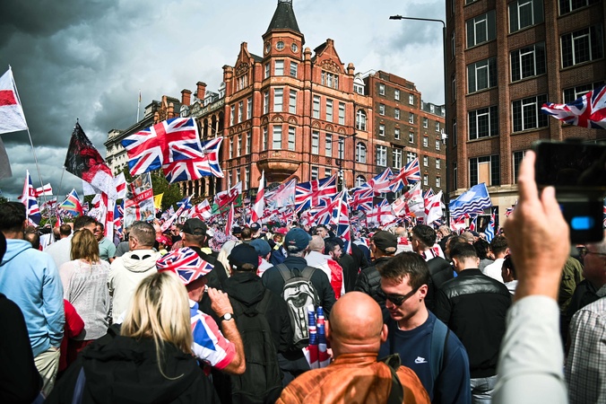 Supporters of Tommy Robinson assemble in Trafalgar Square on September 13, 2025 in London, England. Far-right activist Tommy Robinson (also known as Stephen Yaxley-Lennon) has invited supporters to hold a rally in central London entitled "Unite The Kingdom"., Credit:RBP Red / Avalon
