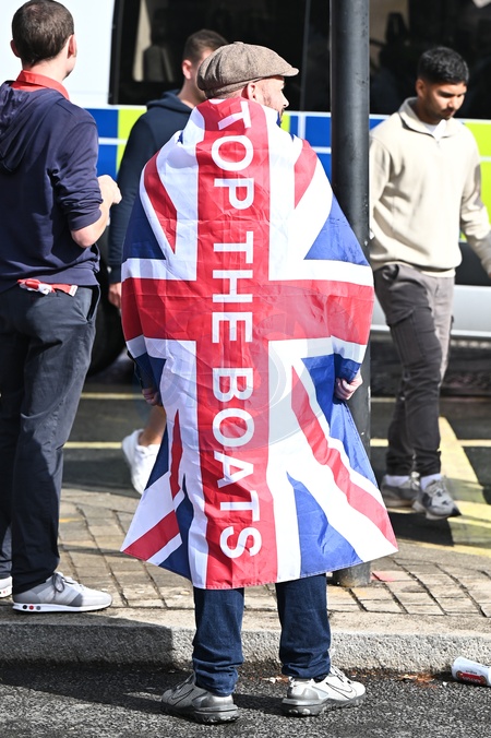 Supporters of Tommy Robinson assemble in Trafalgar Square on September 13, 2025 in London, England. Far-right activist Tommy Robinson (also known as Stephen Yaxley-Lennon) has invited supporters to hold a rally in central London entitled "Unite The Kingdom"., Credit:RBP Red / Avalon