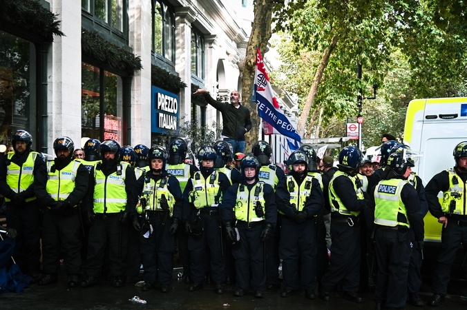 Supporters of Tommy Robinson assemble in Trafalgar Square on September 13, 2025 in London, England. Far-right activist Tommy Robinson (also known as Stephen Yaxley-Lennon) has invited supporters to hold a rally in central London entitled "Unite The Kingd