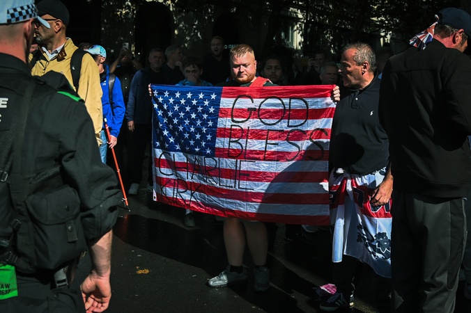 Supporters of Tommy Robinson assemble in Trafalgar Square on September 13, 2025 in London, England. Far-right activist Tommy Robinson (also known as Stephen Yaxley-Lennon) has invited supporters to hold a rally in central London entitled "Unite The Kingd
