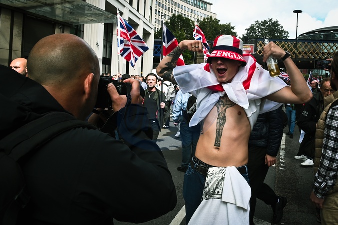 Supporters of Tommy Robinson assemble in Trafalgar Square on September 13, 2025 in London, England. Far-right activist Tommy Robinson (also known as Stephen Yaxley-Lennon) has invited supporters to hold a rally in central London entitled "Unite The Kingdom"., Credit:RBP Red / Avalon