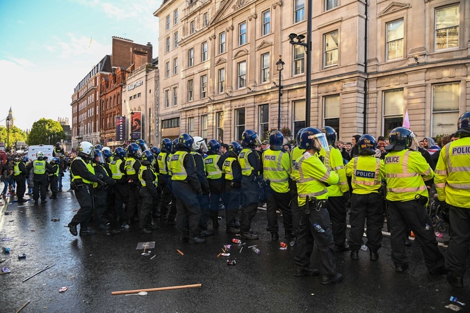 Supporters of Tommy Robinson assemble in Trafalgar Square on September 13, 2025 in London, England. Far-right activist Tommy Robinson (also known as Stephen Yaxley-Lennon) has invited supporters to hold a rally in central London entitled "Unite The Kingd