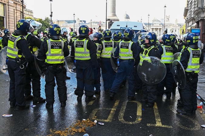 Supporters of Tommy Robinson assemble in Trafalgar Square on September 13, 2025 in London, England. Far-right activist Tommy Robinson (also known as Stephen Yaxley-Lennon) has invited supporters to hold a rally in central London entitled "Unite The Kingd