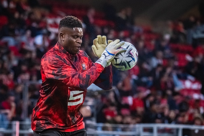 Brice Samba (Stade Rennais) - Match de Ligue 1 McDonald's "Rennes - Lyon (3-1)" au Roazhon Park, le 14 septembre 2025. McDonald's Ligue 1 match "Rennes - Lyon (3-1)" at Roazhon Park, September 14, 2025.