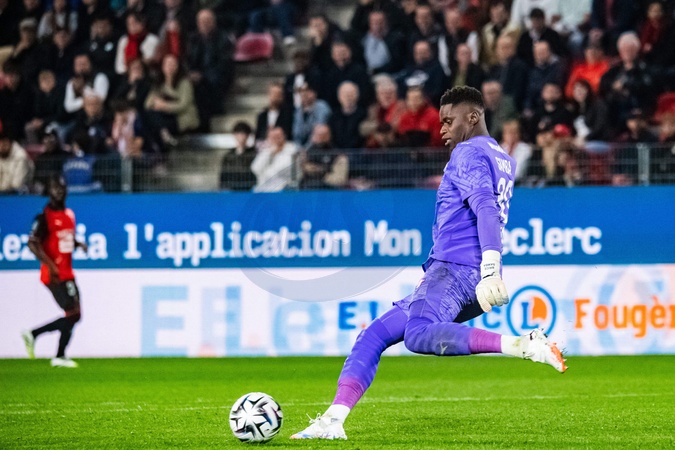 Brice Samba (Stade Rennais) - Match de Ligue 1 McDonald's "Rennes - Lyon (3-1)" au Roazhon Park, le 14 septembre 2025. McDonald's Ligue 1 match "Rennes - Lyon (3-1)" at Roazhon Park, September 14, 2025.