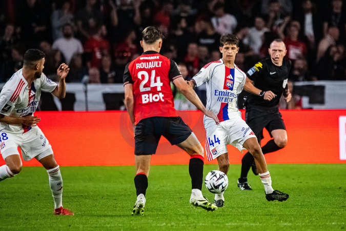 Khalis Merah (OL) - Match de Ligue 1 McDonald's "Rennes - Lyon (3-1)" au Roazhon Park, le 14 septembre 2025. McDonald's Ligue 1 match "Rennes - Lyon (3-1)" at Roazhon Park, September 14, 2025.