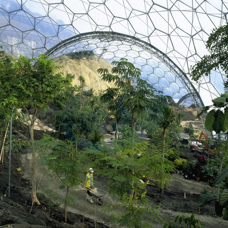 Landscaping works inside biome at the Eden Project, Cornwall, United Kingdom. Designed by Nicholas Grimshaw and Partners., Credit:Giles Barnard / Avalon