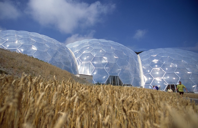 Domes at the Eden Project. Bodelva, St Austell, Cornwall, United Kingdom. Designed by Nicholas Grimshaw and Partners., Credit:Jean-Francois Cardella / Avalon