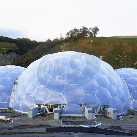 Construction of the Eden Project, Cornwall, United Kingdom. Designed by Nicholas Grimshaw and Partners., Credit:Giles Barnard / Avalon