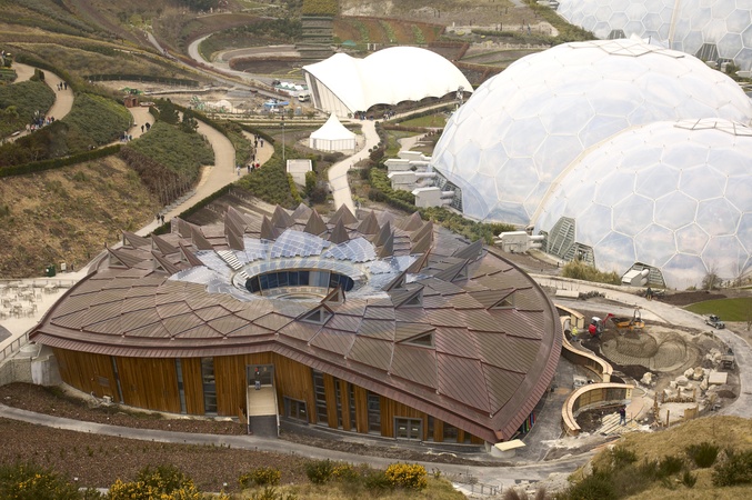 The £15 million education centre The Core is the new addition of the Eden Project, St Austell, Cornwall, England, UK. The design is based on the fundamental rule of how plants grow, incorporating a central trunk and canopy roof that shades the ground and harvests the sun., Credit:Adrian Sherratt / Avalon