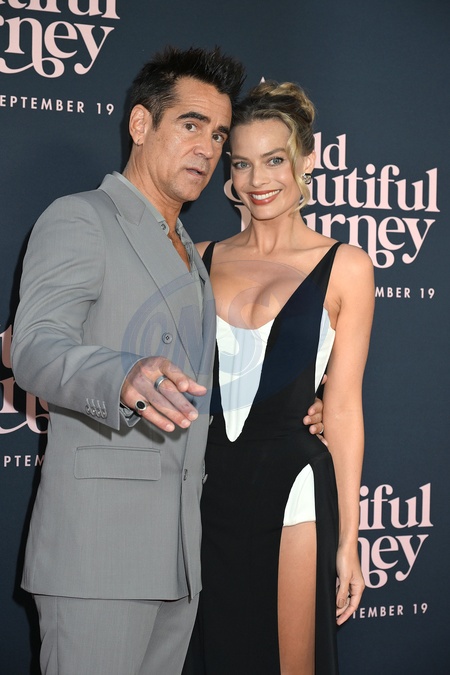 Colin Farell and Margot Robbie in a Mugler black dress attends The US Premier of "A Big Bold Beautiful Journey" on September 15, 2025 at the AMC Lincoln Square in New York, New York, USA., Credit:Robin Platzer / Avalon