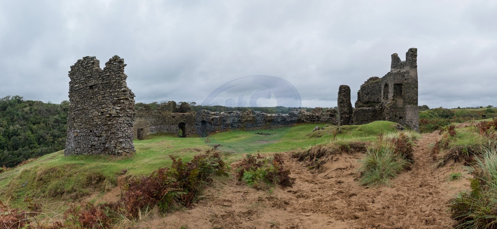 Pennard Castle at Three Cliff's Bay, Gower Peninsula, south Wales . Digitally stitched panorama.United Kingdom. 10 September 2025, Credit:Mark Fairhurst / Avalon