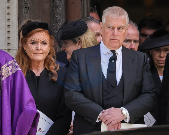 London, UK, 16th Sep 2025. The Duchess of York, Prince Andrew,. HRH King Charles III, The Prince and Princess of Wales Prince William and Princess Catherine, Anne the Princess Royal, Prince Andrew The Duke and Duchess of York, Prince Michael of Kent and other senior members of the Royal Family all pay their last respects as the coffin is carried to the hearse. They then depart from Westminster Cathedral after the a requiem mass, a Catholic funeral service held for the Duchess of Kent, who passed away on 4 Sep., Credit:Imageplotter / Avalon