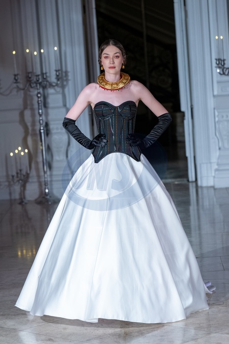 Model walks the Sanyukta Shrestha SS26 LFW Catwalk Show at 1901 Ballroom, Andaz London Hotel, 40 Liverpool Street, EC2M 7QN on 19,09,2025, Credit:JIMMY JAMES / Avalon