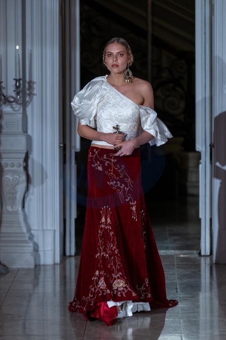 Model walks the Sanyukta Shrestha SS26 LFW Catwalk Show at 1901 Ballroom, Andaz London Hotel, 40 Liverpool Street, EC2M 7QN on 19,09,2025, Credit:JIMMY JAMES / Avalon
