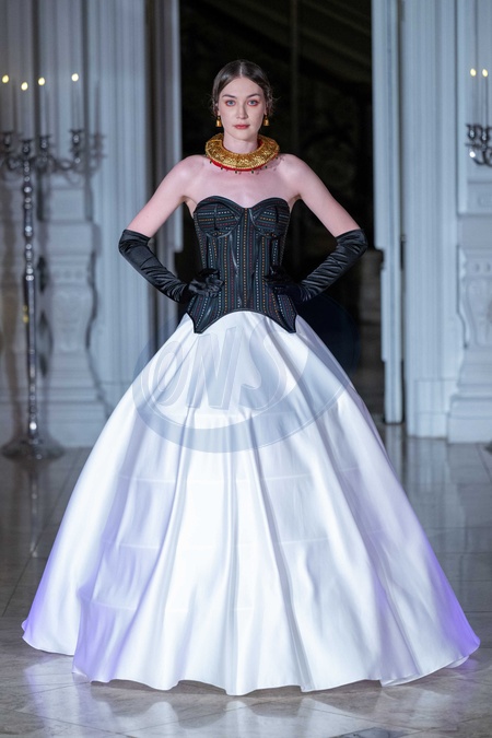 Model walks the Sanyukta Shrestha SS26 LFW Catwalk Show at 1901 Ballroom, Andaz London Hotel, 40 Liverpool Street, EC2M 7QN on 19,09,2025, Credit:JIMMY JAMES / Avalon