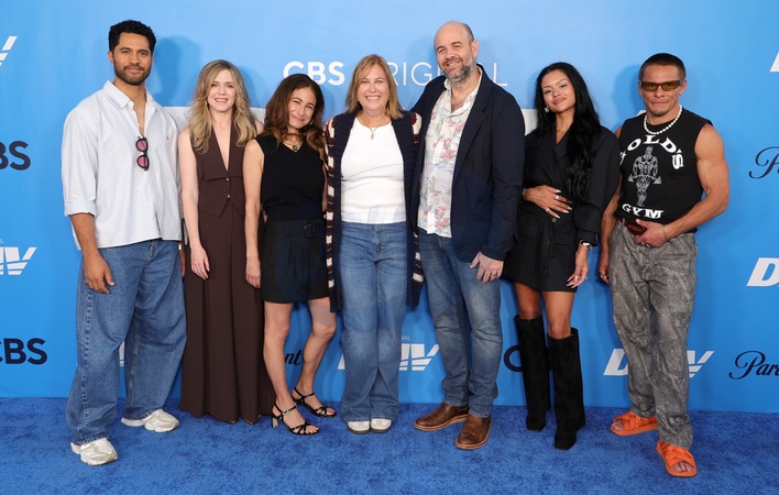 20 Septmber 2025 . Los Angeles, California - Alex Tarrant, Harriet Dyer, Dana Klein, Amy Reisenbach, Matt Kuhn, Gigi Zumbado, Tony Cavalero At "DMV” Exclusive Sneak Peek Outdoor Screening Event held at Vidiots Foundation - Hollywood DMV in Los Angeles., Credit:Sadou Faye / Avalon