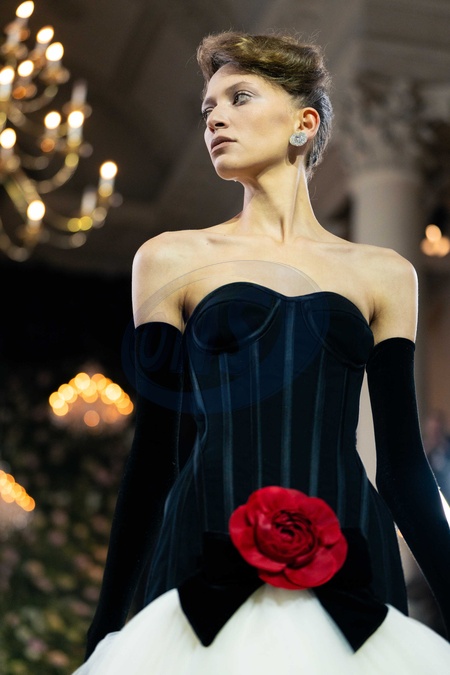 Model walks the runway at the Richard Quinn show during London Fashion Week September 2025 at St John's Smith Square., Credit:Lounis Tiar / Avalon