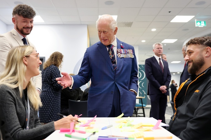 BARROW-IN-FURNESS, ENGLAND - SEPTEMBER 22: King Charles III visits a careers hub, opened as part of plans to help regenerate Barrow's town centre, on September 22, 2025 in Barrow-in-Furness, England., Credit:Chris Jackson / Avalon