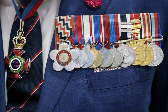 BARROW-IN-FURNESS, ENGLAND - SEPTEMBER 22: King Charles III, medals detail, visits Coffee D'Ash in the Portland Walk regeneration area on September 22, 2025 in Barrow-in-Furness, England., Credit:Chris Jackson / Avalon